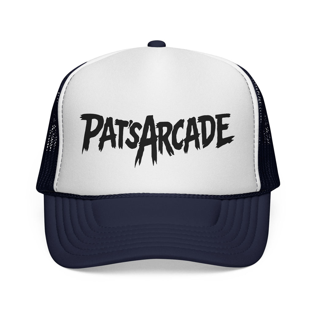 A bold, retro-inspired trucker cap that brings streetwise attitude to everyday wear. The high-profile foam front features a hand-lettered, slightly jagged logo that feels like a band flyer or a vintage arcade sign. Breathable nylon mesh in the back keeps things cool on long days, while the curved visor with six-row stitching adds a rugged, broken-in look. Lightweight and adjustable, this cap slips into your regular rotation for road trips, late-night hangs, or weekend errands. The vivid, fade-resistant print holds up over time, and any small creases naturally smooth out with wear, so it only looks better the more you use it.